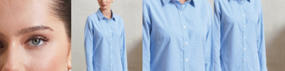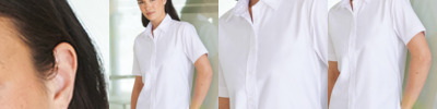 70% cotton/30% polyester. Easy care fabric. Tailored fit. Classic collar. Bust and back darts. Curved hem. Available in long sleeve 932F.