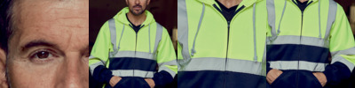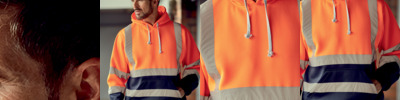 100% polyester. Anti-pill single jersey knitted soft feel fabric. Conforms to EN ISO 20471: 2013 + A1: 2016 class 3. RIS-3279-TOM (orange colourway only). Black and navy provide enhanced visibility. Drop shoulder style. Two panel hood with grey contrast drawcord. Taped neck. Two reflective bands around the body, sleeves and one over each shoulder. Front pouch pocket. Ribbed cuffs and hem.