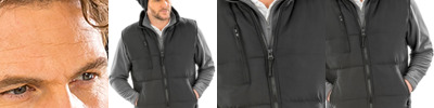 Peached polyester microfibre outer. Polyester Active Fleece lining. Polyester padding. Shower resistant and windproof. Concealed adjustable hood in collar. Drawcord adjusters at collar, armholes and hem. Full length heavy plastic two way zip. Right chest zip pocket. Two front zip pockets. Cut out label. Access for decoration.