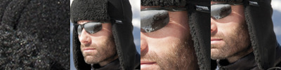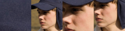 100% plush cotton. Three section fold up peak. Ear and neck protection. Elasticated fit. No centre seam.