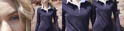 100% ringspun combed cotton.* This item runs small in comparison to some other brands. Please check sizing before decoration. Fitted cut. Ribbed knit collar. Taped neck. Narrow four self colour button placket. Cuffed sleeves. Side seams. Side vents. Twin needle hem. .